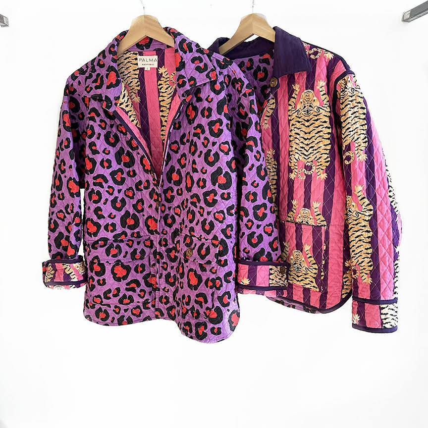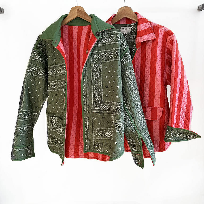 Cette veste chemise matelassé en coton est imprimée avec la technique de block-print et/ou sérigraphie.