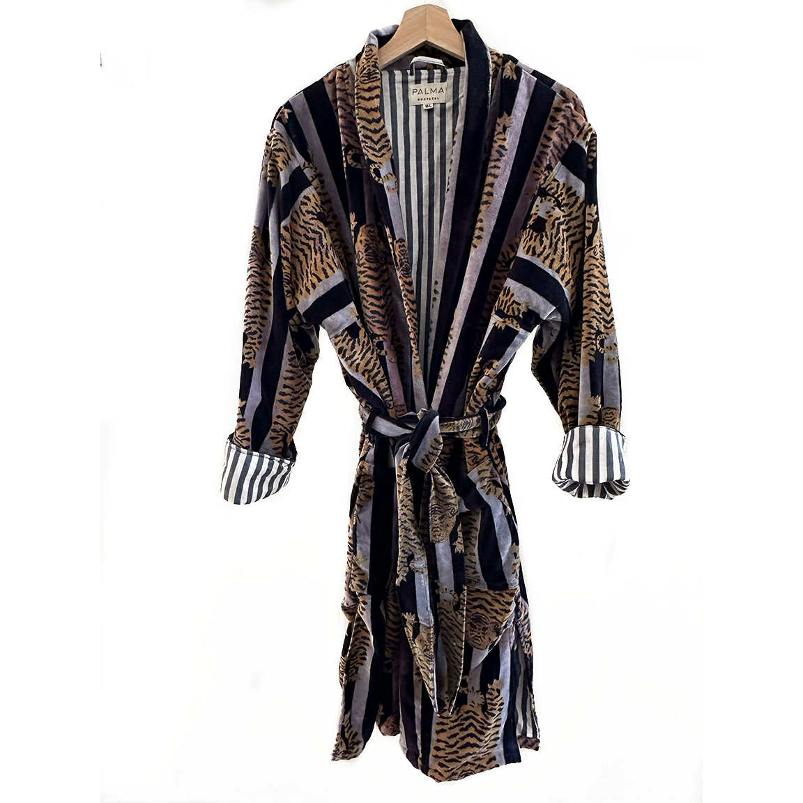 Robe de chambre unisex coton velours, motif floral, exotique, chic et décontracté