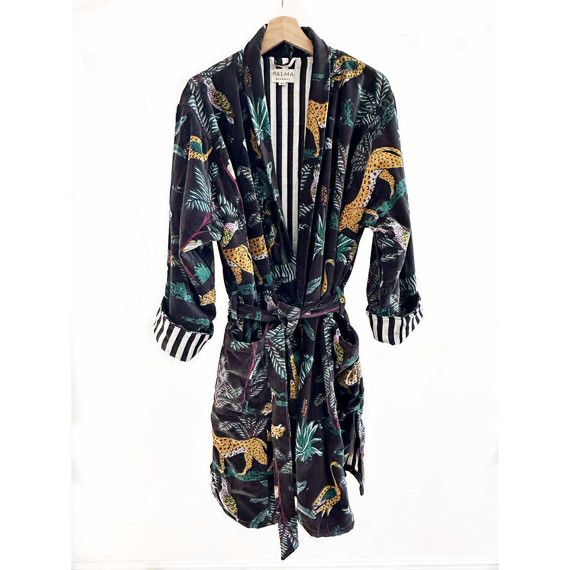 Robe de chambre unisex coton velours, motif floral, exotique, chic et décontracté