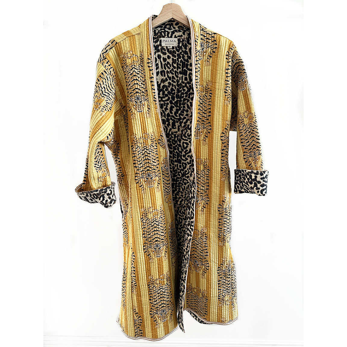 On voyage en Inde pour travailler directement avec les artisans ou l’on sélectionne tel quels des textiles aux imprimés traditionnels pour nos collections exclusives. On développe aussi nos propres imprimés au block de bois ou à la sérigraphie pour créer nos propres imprimés. Pyjama, robe d’intérieur, kimono, coussin —vous reviennent à chaque saison avec un nouveau look.